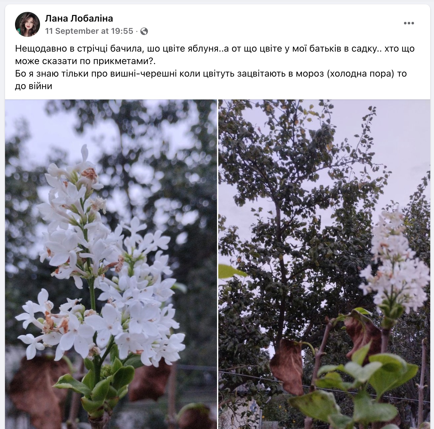 «Також таке стається, коли рослини відчувають свою загибель — вони починають цвісти. Це їхня максимальна реакція на стрес, і при цьому рослина хоче плодоносити — цвіте і дає насіння. Все це її виснажує, бо ж плодів від цього цвітіння не буде, — додає він. — Наприклад, гіркокаштан, коли знаходиться на межі своєї загибелі, то дуже часто викидає суцвіття восени».