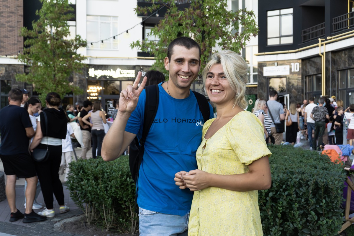 Розваги, дитячий сміх, живе виконання музики на саксофоні та пісень під гітару, створювали теплу атмосферу. Тут можна було і пригоститись смаколиками, зануривши фрукти в шоколад, або ж посмакувати шампанське чи крафтовий лимонад, подзвонивши у дзвіночок. Професійний фотограф допоміг зберегти приємні спогади у знімках на полароїд, бажаючі могли миттєво отримати фото та прикріпити їх на картині. Залишали й побажання сусідам: миру, перемоги, щастя, успіху та домашнього затишку.