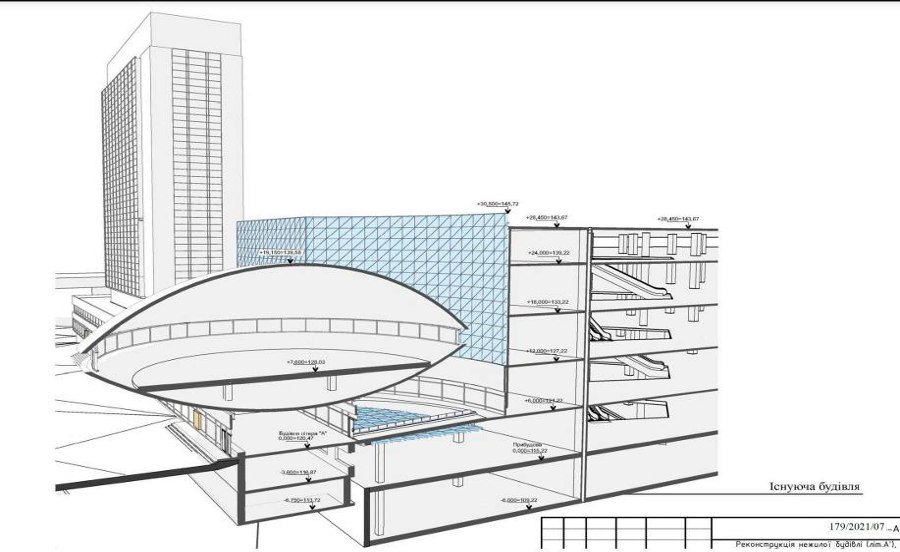 У квітні цього року Державна інспекція архітектури та містобудування видала дозвіл на реконструкцію прилеглих до Тарілки нежитлових будівель у ТРЦ.