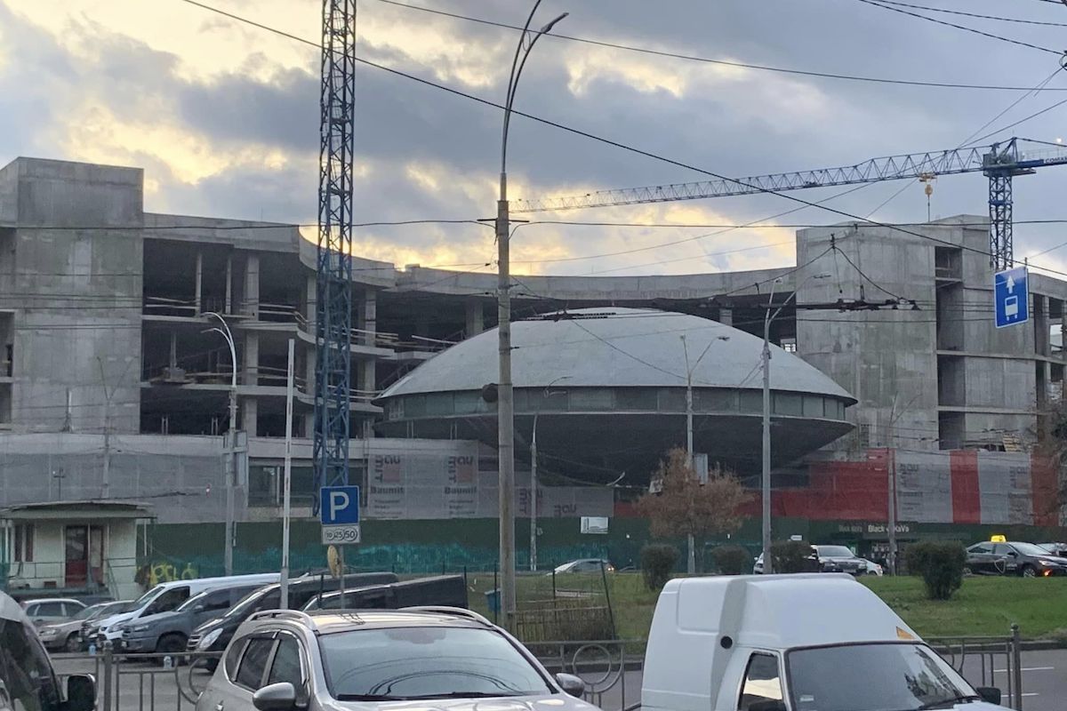 Торговельно-розважальний центр Ocean Mall, що будується на Либідській площі, щодалі поглинає пам’ятку модернізму, відому як Тарілка. Днями київський активіст Дмитро Перов опублікував фото, як будівля виглядає зараз.