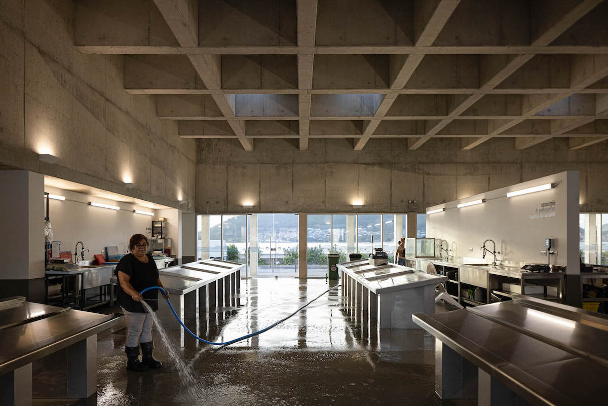 Простір поділено на три зони: відкриту залу для овочів, фруктів і риби; технічні приміщення; ізольована зона для вивантаження товарів.