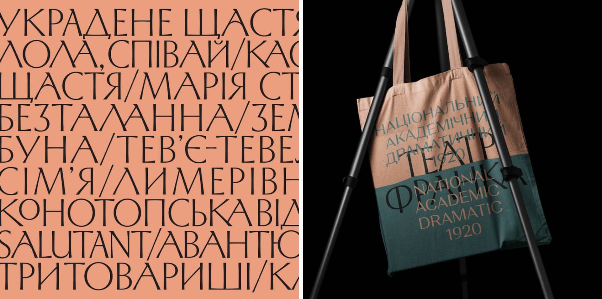 Шрифт Franko Theatre має різноманітні лігатури й альтернативи, тому афіші завжди виглядають дещо по-новому. Різні за шириною літери символізують різноманітність ролей та акторів, а асиметричні елементи відображають різний досвід глядачів залежно від їхнього розташування в залі.