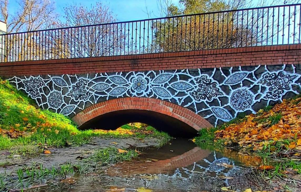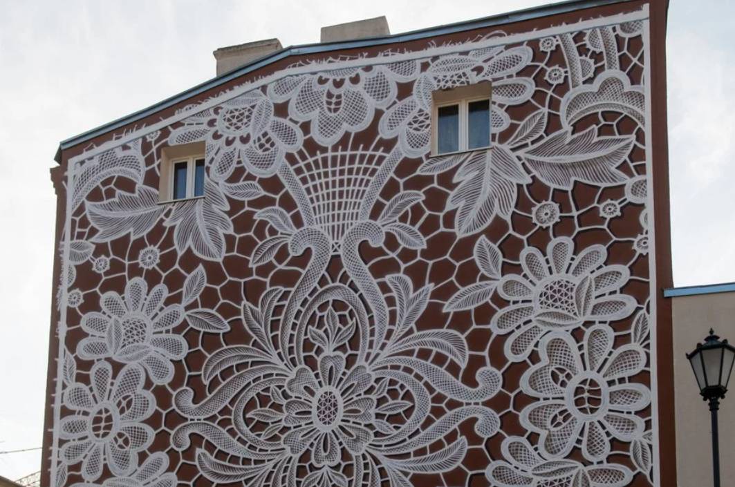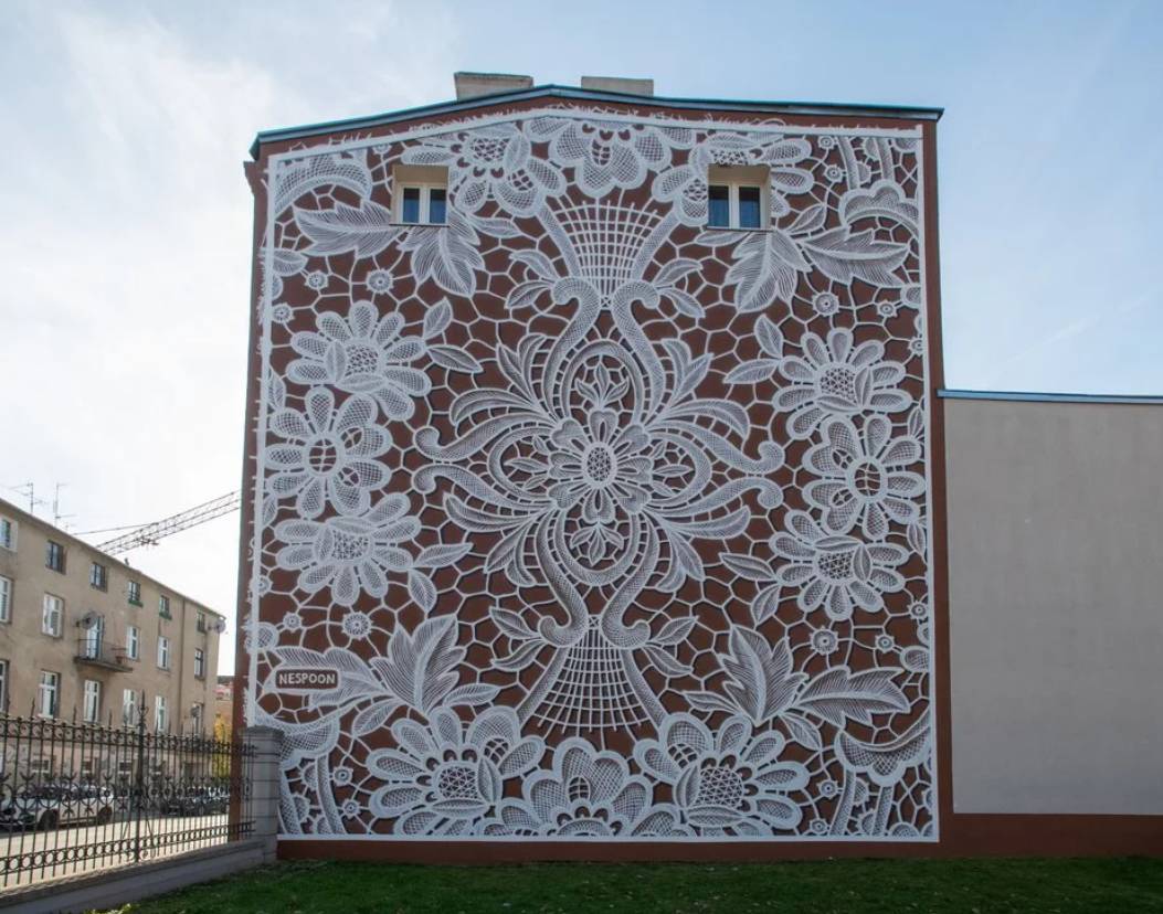 Польська мисткиня під псевдонімом NeSpoon створила мурал який нагадує мереживо.