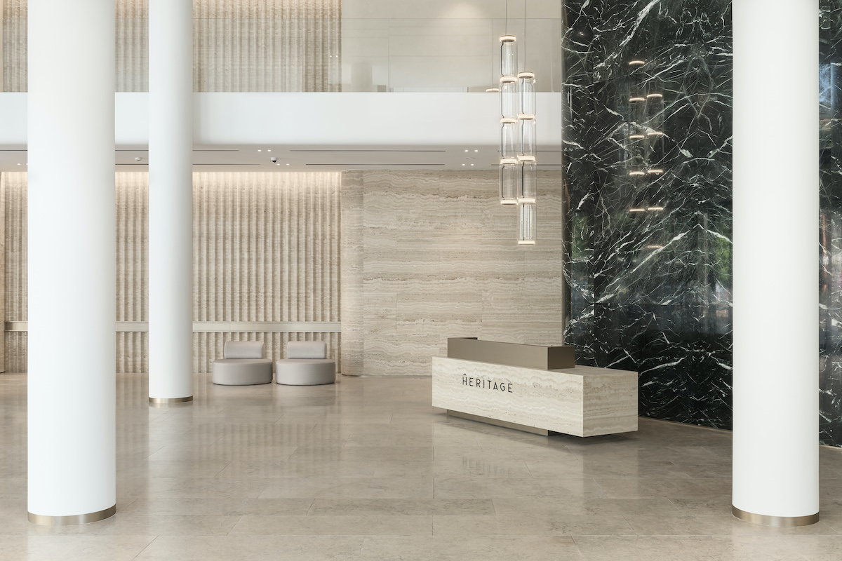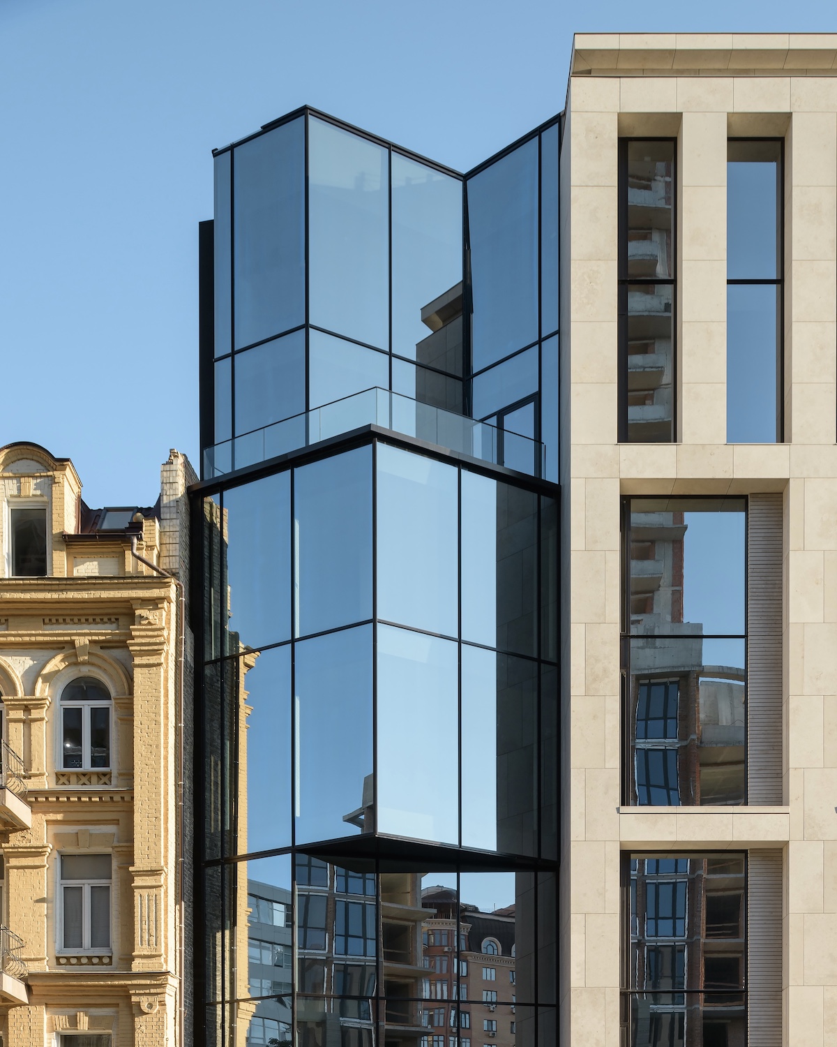 На вулиці Жилянській, 25 у центрі Києва збудували бізнес-центр Heritage за проєктом українського архітектурного бюро AIIX studio.