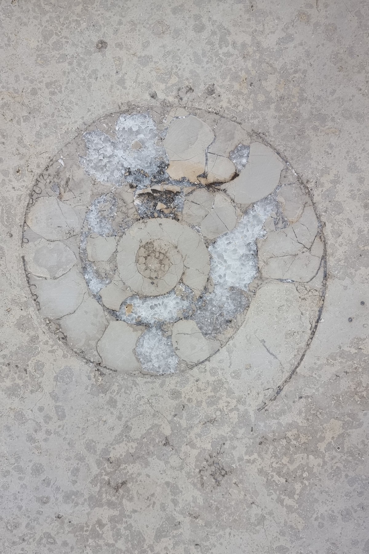 У структурі камею збереглися амоніти, белемніти та інші скам’янілі істоти. На фасаді виділяється візерунок 30-сантиметрової мушлі.