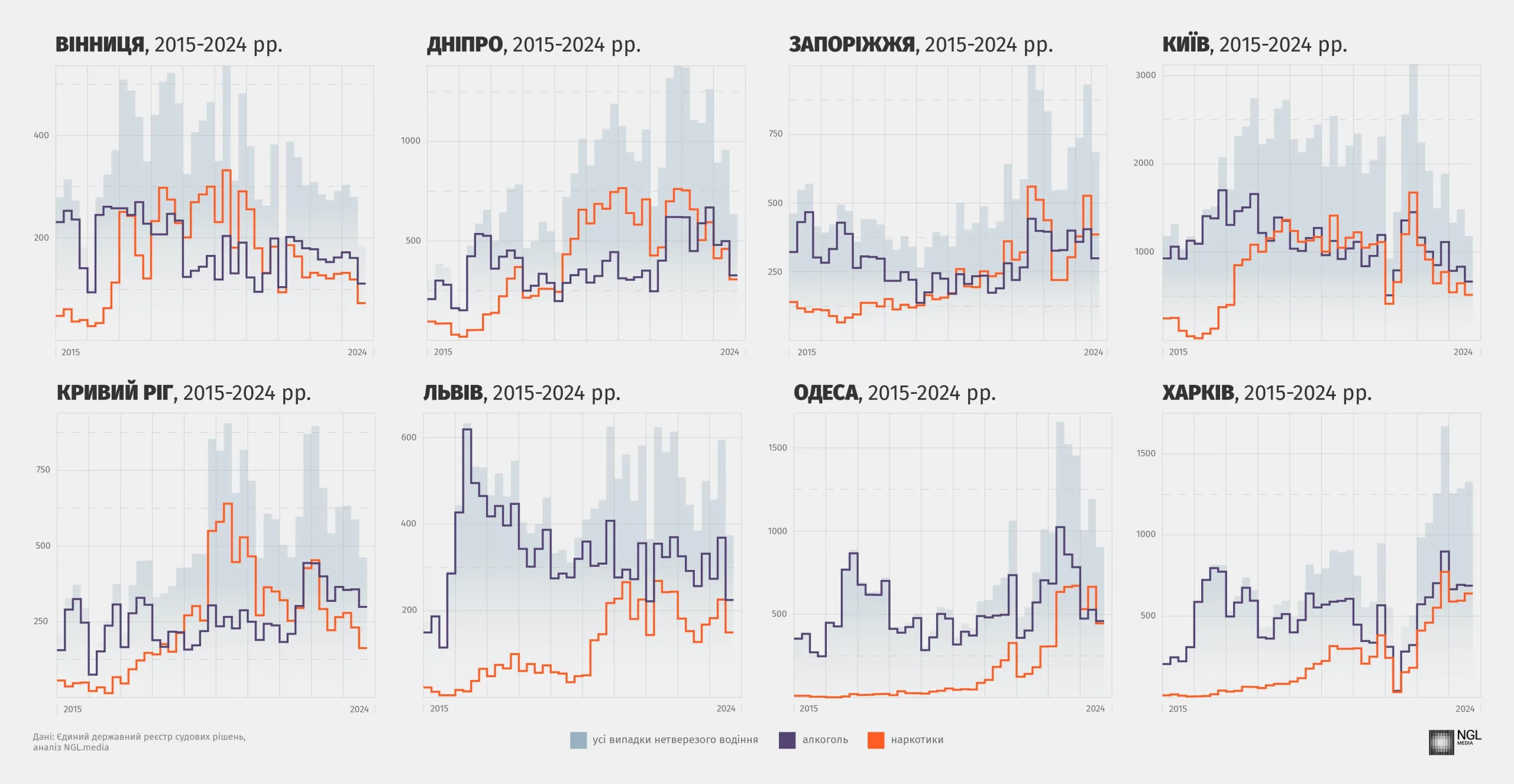 Негативна динаміка погіршилась після початку повномасштабного вторгнення у 2022 році, так вже у 2023 році було зафіксовано антирекорд – 151 тисячу випадків водіння у стані алкогольного сп’яніння, а за перші чотири місяці 2024 року було майже 50 тисяч таких випадків, до того ж кількість водіїв у стані наркотичного сп’яніння збільшилася більш ніж у шість разів.