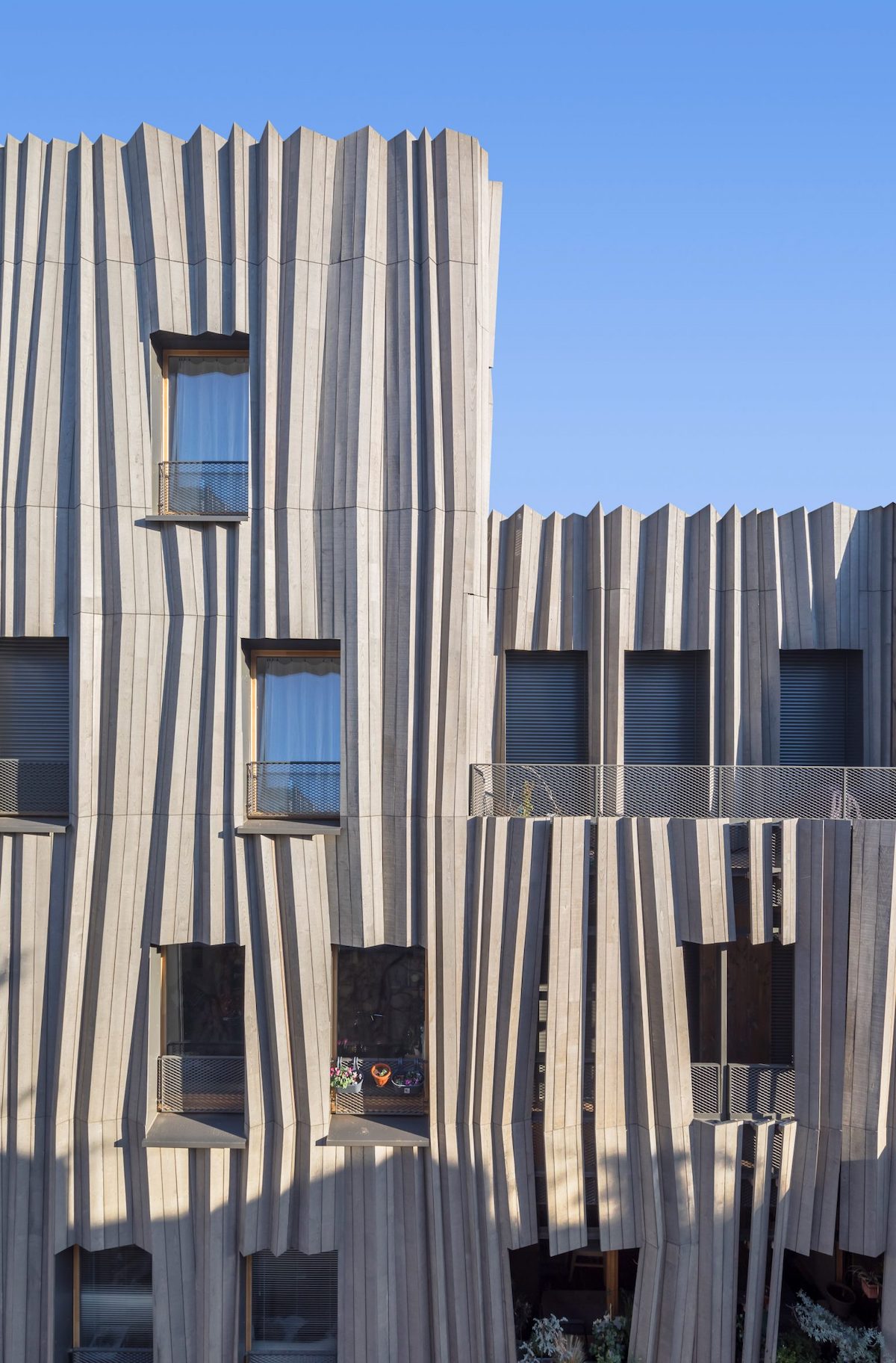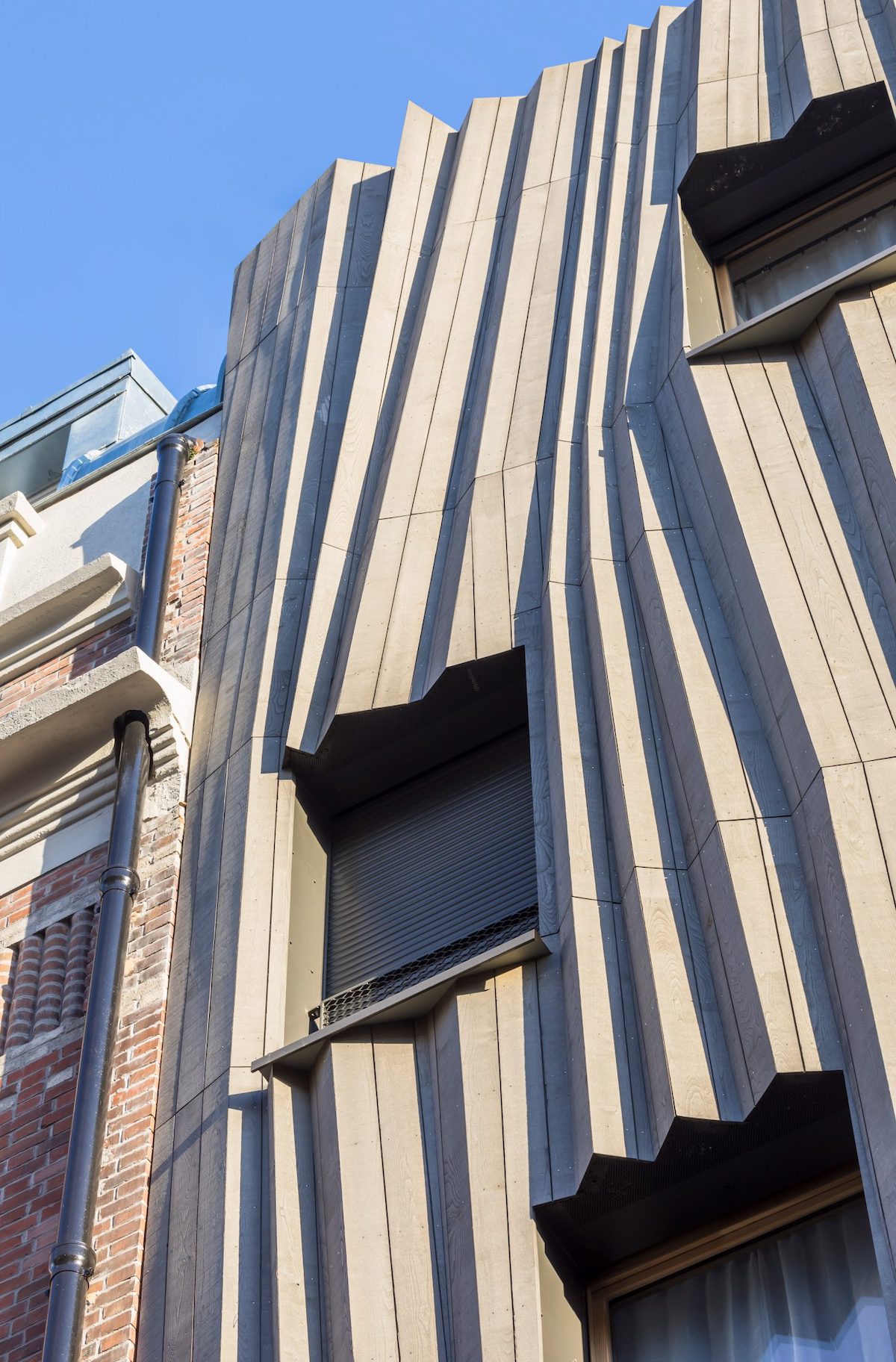 Японська студія архітектора Кенґо Куми завершила будівництво дерев’яного житлового будинку в Парижі, який вирізняє «плісирований» фасад, повідомляє Dezeen.