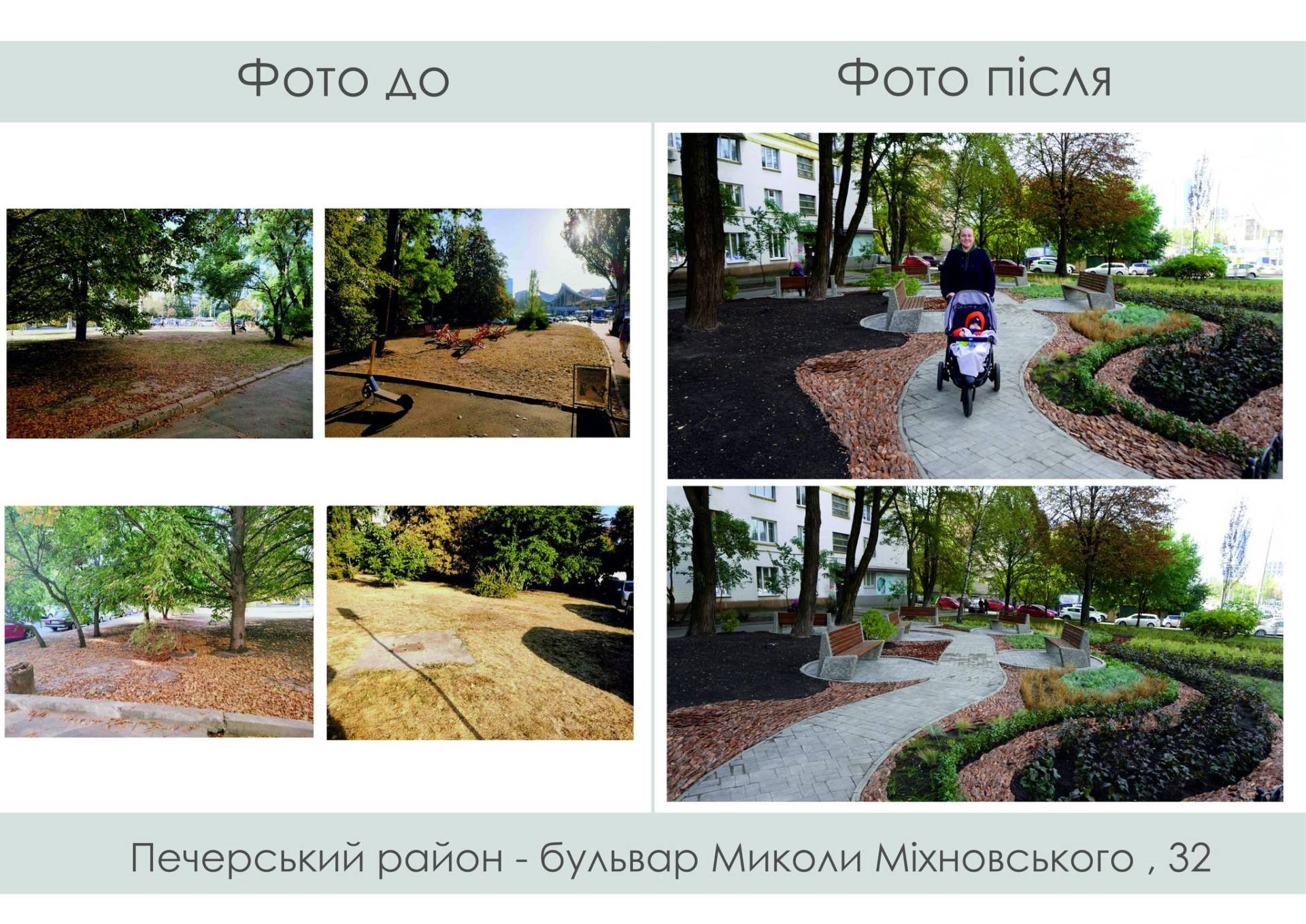 «Перевагу віддавали місцям поблизу густонаселених житлових комплексів, офісних центрів і закладів освіти. У деяких мініскверах передбачені дитячі або спортивні майданчики, а також спеціальні зони для вигулу домашніх улюбленців», — повідомив директор Департаменту захисту довкілля Олександр Возний.