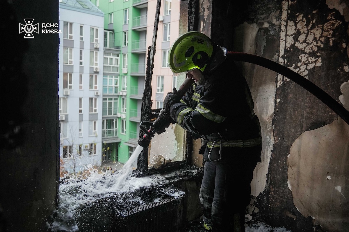У київському ЖК Комфорт Таун загорілася одна з квартир, військова адміністрація спершу пвідомила, що це наслідки атаки російських безпілотників, — вранці над столицею помітили ворожий дрон, працювала ППО.