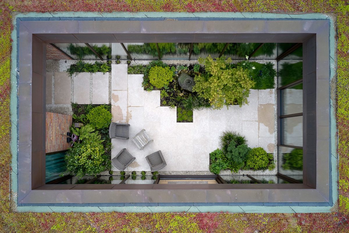 Металеві ворота з візерунком, що зображає ластівок, ведуть до внутрішнього подвір’я, що є не надто типовим плануванням для Англії.