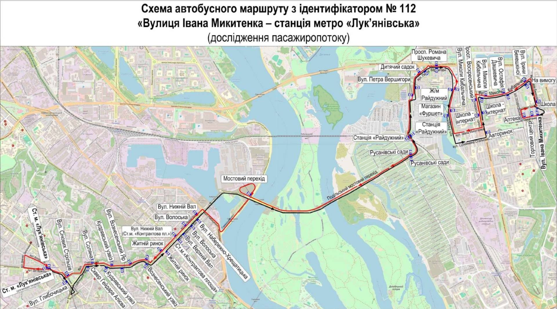 Автобус №112 курсуватиме від вулиці Івана Микитенка до станції метро «Лук’янівська».