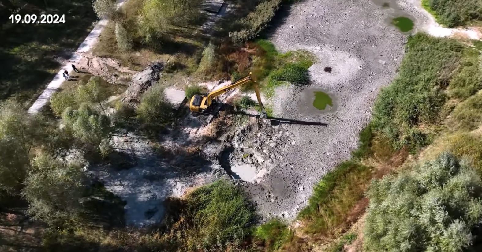 Весь ґрунт залишається в межах периметру робіт, жодні матеріали не вивозяться за межі території озера.