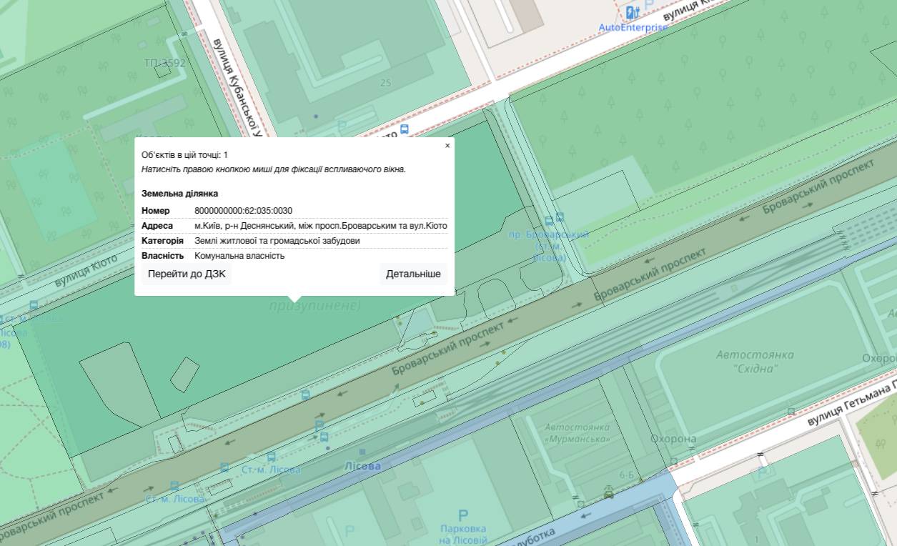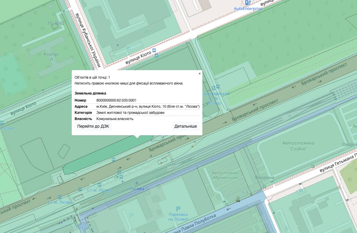 Мова йде про ділянку площею майже 0,4 га, розташовану вздовж Броварського проспекту біля адреси вул. Кіото, 10. Нормативна грошова оцінка цієї ділянки складає 23,1 мільйона гривень. А цільовим призначенням земель є будівництво та обслуговування будівель торгівлі.