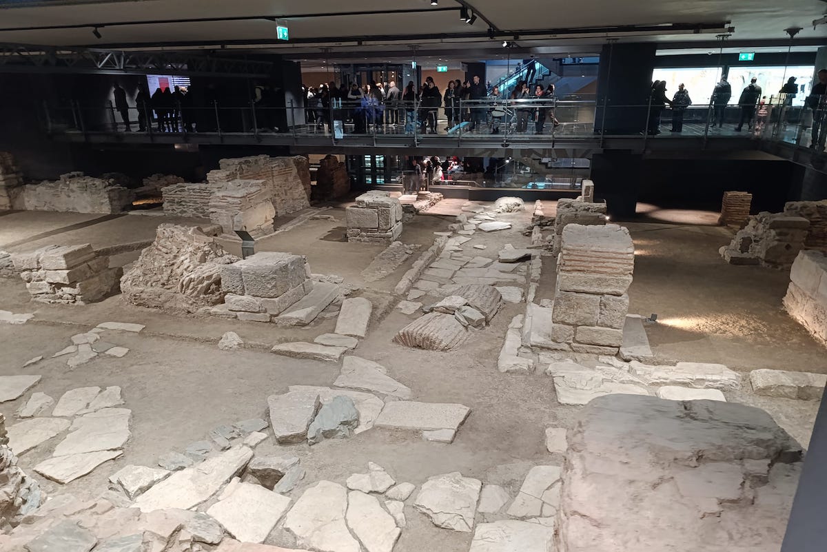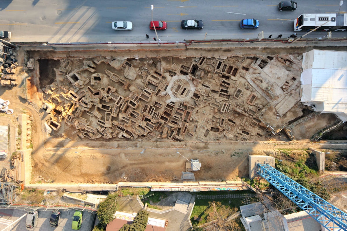 Трасування лінії метро частково збіглося з давнім торговим шляхом крізь місто до порту. На місці знайшли понад 300 тисяч артефактів: давньогрецькі поховання з прикрасами та золотими монетами, статуя Афродіти, ранньохристиянська базиліка, мозаїки IV століття, а також чи не найцінніша знахідка — вулиця візантійської епохи з мармуровим покриттям, колоннами, водопровідною та каналізаційною системою.