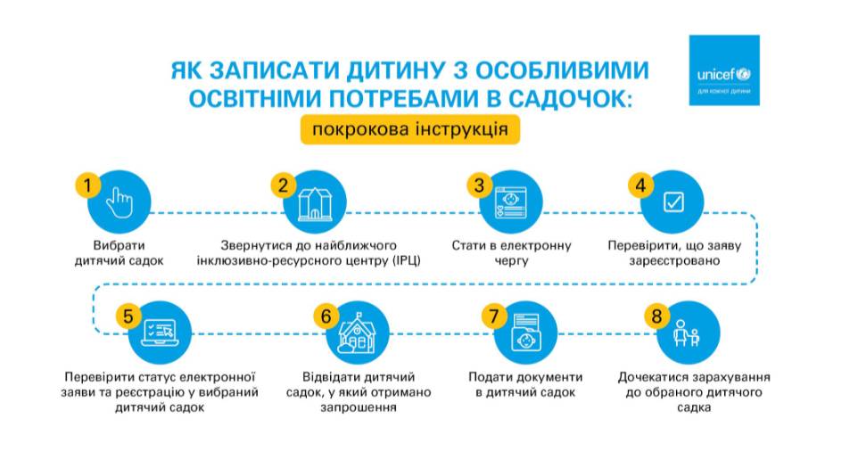 ЮНІСЕФ нагадує, що в Україні впроваджують інклюзивне навчання для дітей усіх вікових груп, зокрема для дошкільнят. Та оскільки батьки дітей з особливими освітніми потребами можуть не знати, як почати цей процес, була створена спеціальна інструкція.