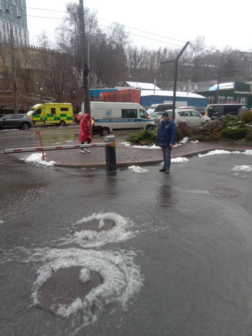 Ділянку вулиці Глибочицька навпроти парку імені Гейдара Алієва затопило через прорив труби, повідомляє Київ комунальний.