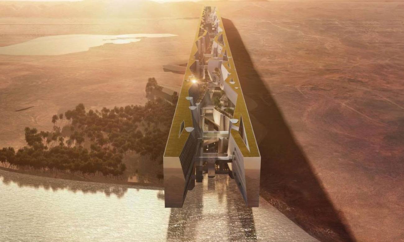 Саудівська Аравія прийматиме Чемпіонат Світу з футболу в 2034. Один зі стадіонів буде на даху міста-стіни, якого ще не існує