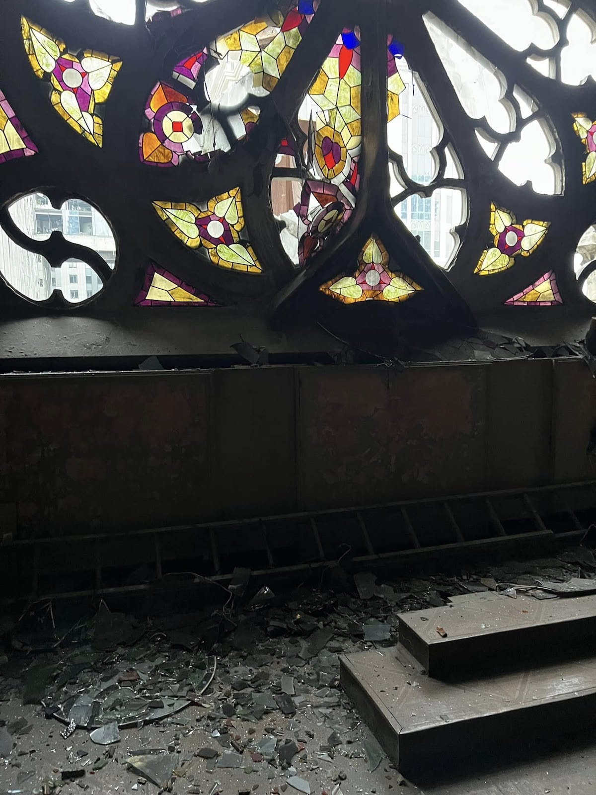 У Миколаївському костелі в Києві вибито скло через ракетний удар (фото)