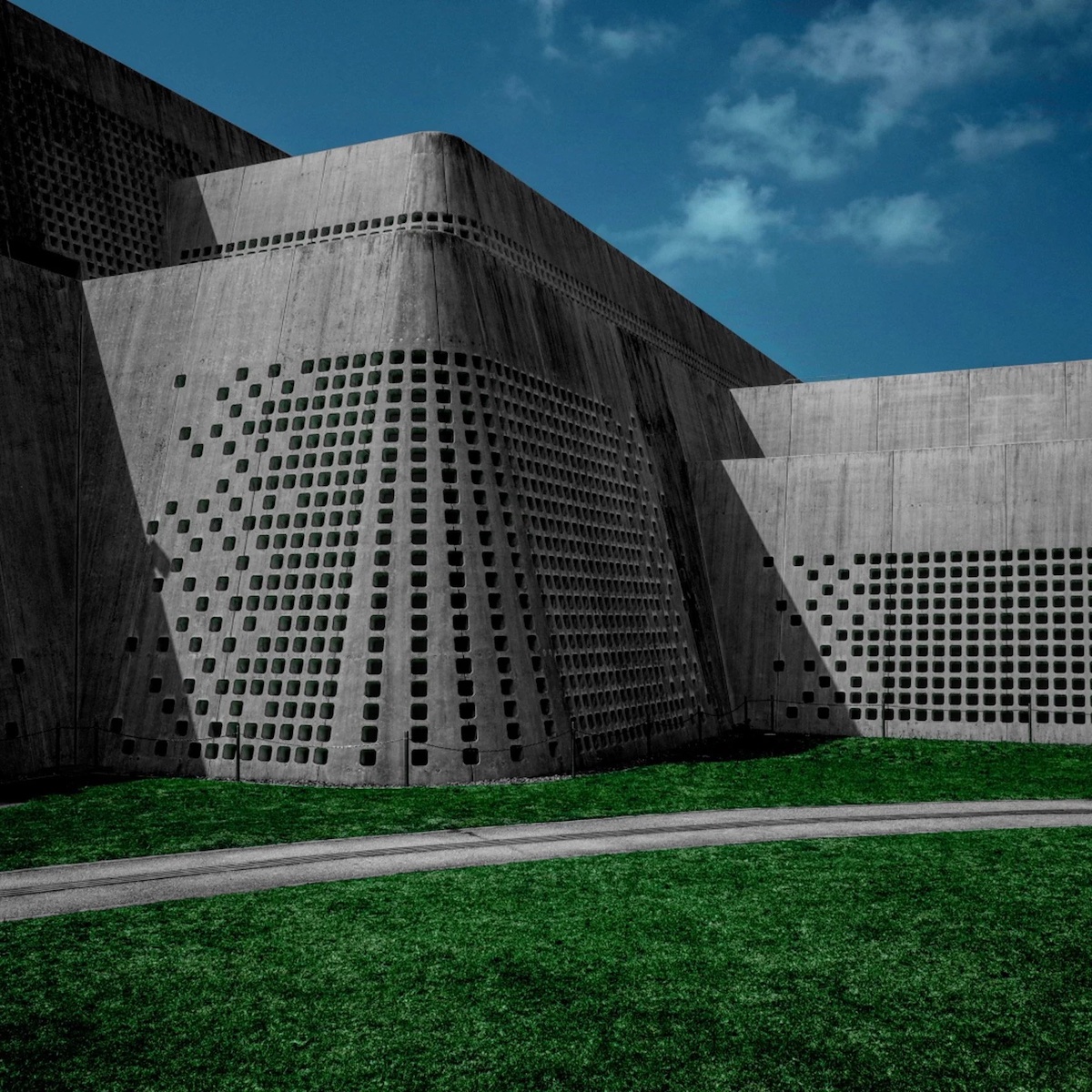 Нагромадження колонад, пергол і терас обрисом нагадує Полу Таллету бомбардувальник B-2. Бетонні решітки сірого та цинобрового кольору мають дещо пористу структуру й поглинають вологу, створюючи сприятливе середовище для моху.