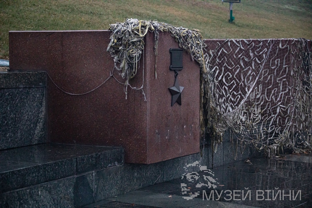 Разом із бронзовими літерами, якими було викладено назви міст, працівники музею демонтували зображення радянської медалі «Золота Зірка».