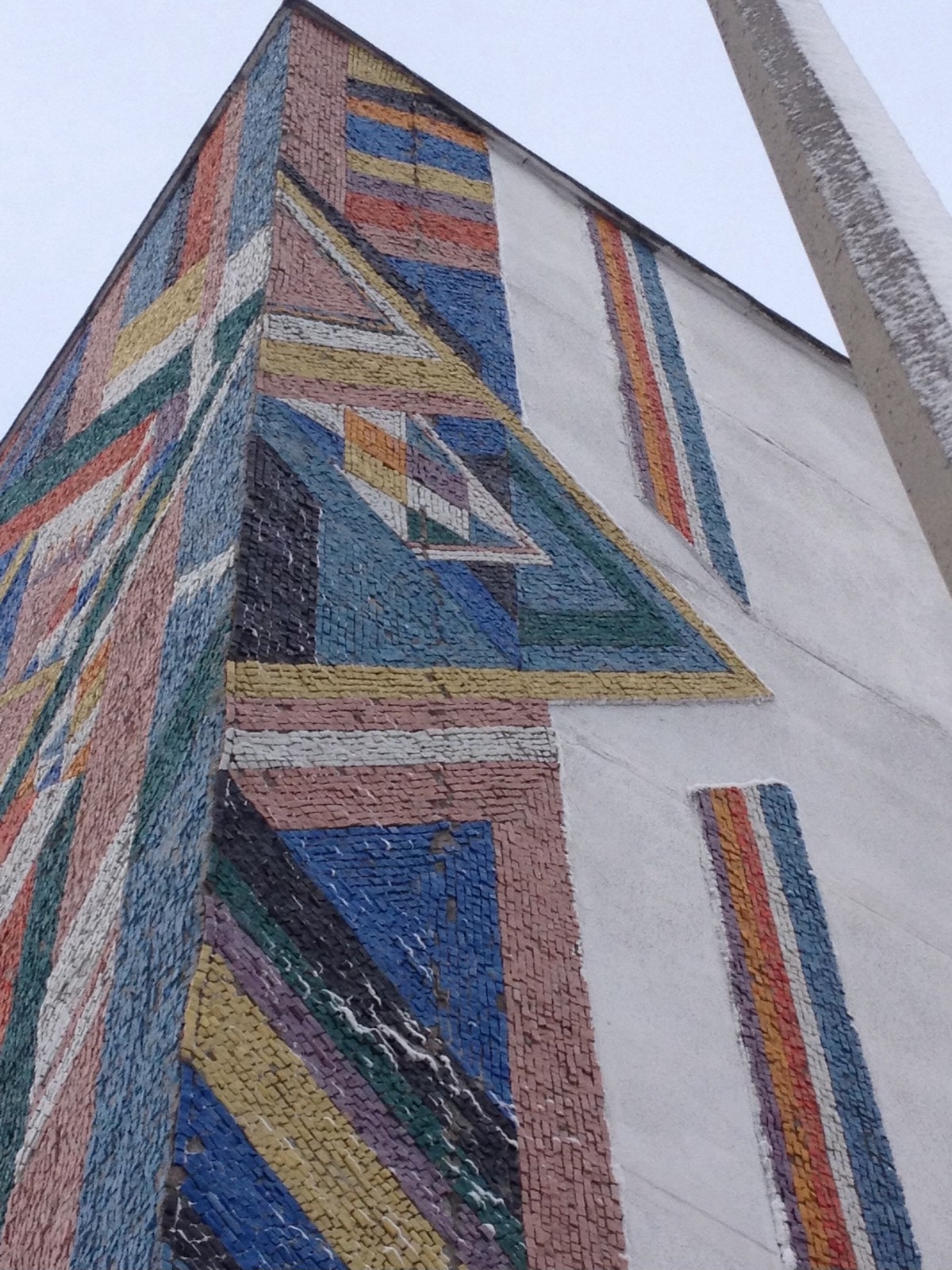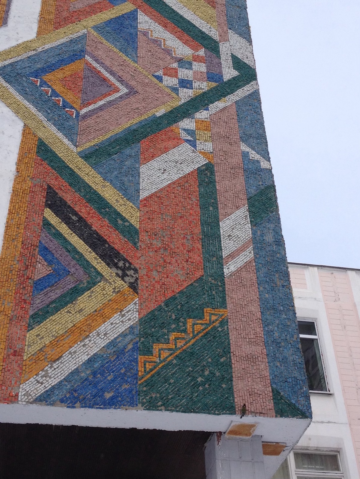 З лівого боку фасаду був інший фрагмент мозаїки, який кілька років тому збили.