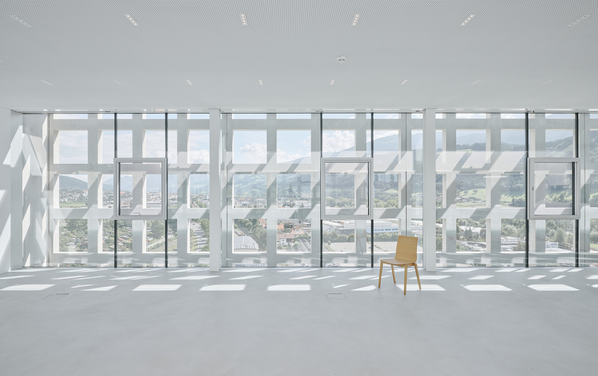 Архітектор Ханно Шльогль у колаборації з obermoser + partner architekten добудував до оригінальної будівлі «корону» — простір-сітку для проведення корпоративних подій.
