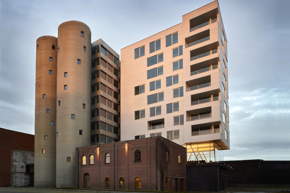 Житловий комплекс Kanaal у бельгійському Вейнегемі біля Антверпена, проєктували Stéphane Beel Architects. Два з восьми корпусів зерносховища ХІХ століття знесли, збудувавши натомість нові прибудови, а в решті зробили невеликі отвори-вікна. Крім квартир, комплекс включає також музей сучасного мистецтва та офіси.