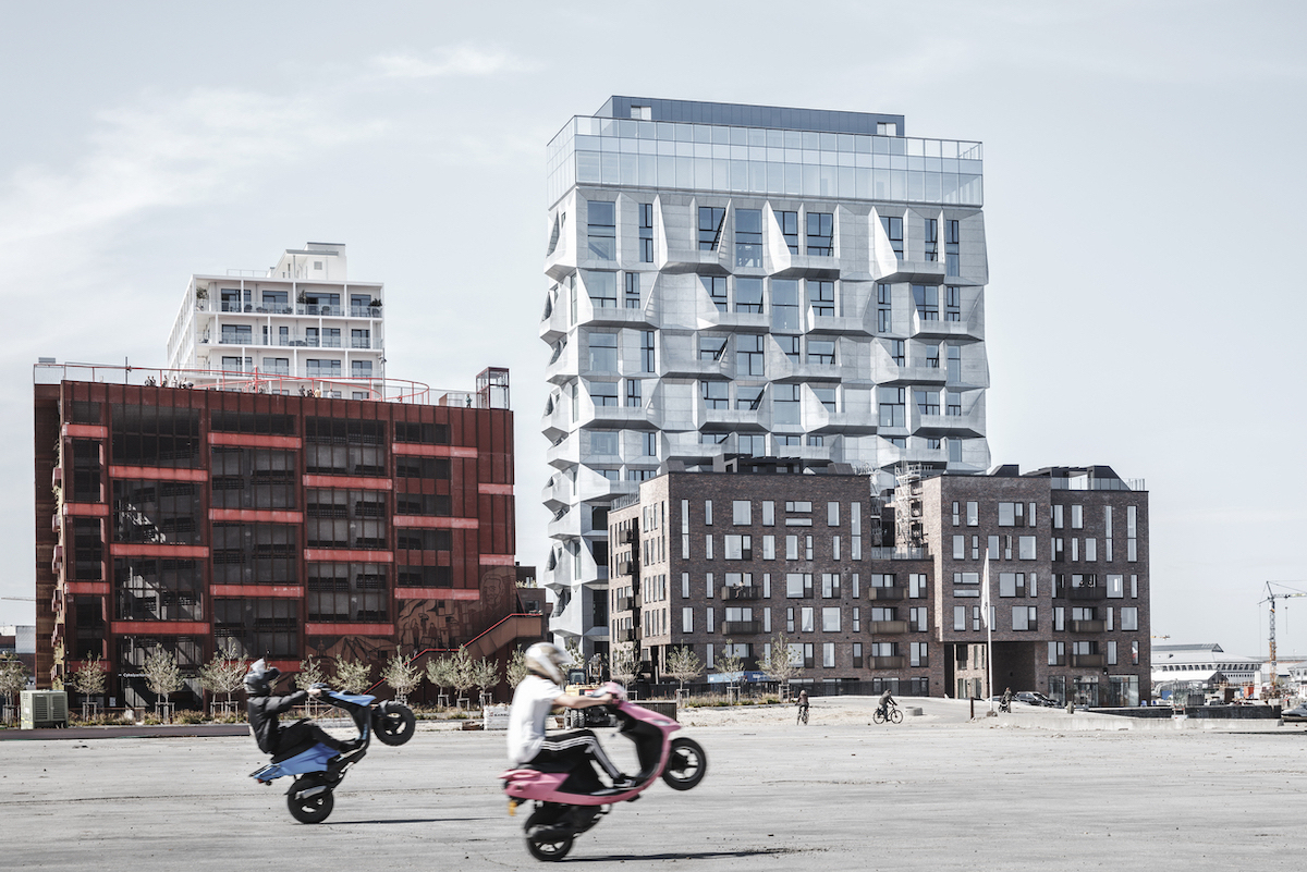 Про будівництво «п’ятихвилиного міста» Нордгавн у Копенгагені, Данія, «Хмарочос» розповідав тут. Один із житлових комплексів нової забудови — це колишній елеватор заввишки у 17 поверхів. Проєкт розробляли Cobe.