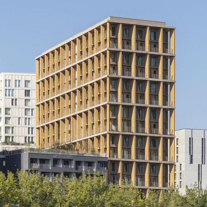 Житлова 16-поверхівка, збудована на березі Сени у 13-му окрузі Парижа за проєктом LAN Architecture, стала найвищою дерев’яною будівлею у Франції, повідомляє The RIBA Journal.