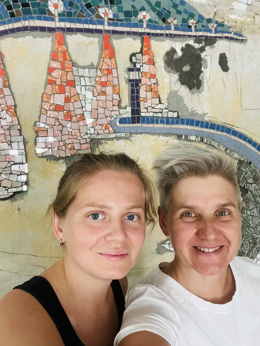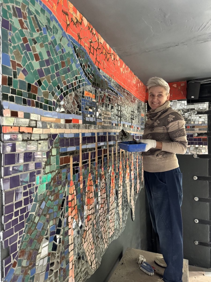 Над мозаїчним панно працювали художниці Ксенія Ковальова й Анастасія Кравчук. Вони використали плитку та дзеркала.