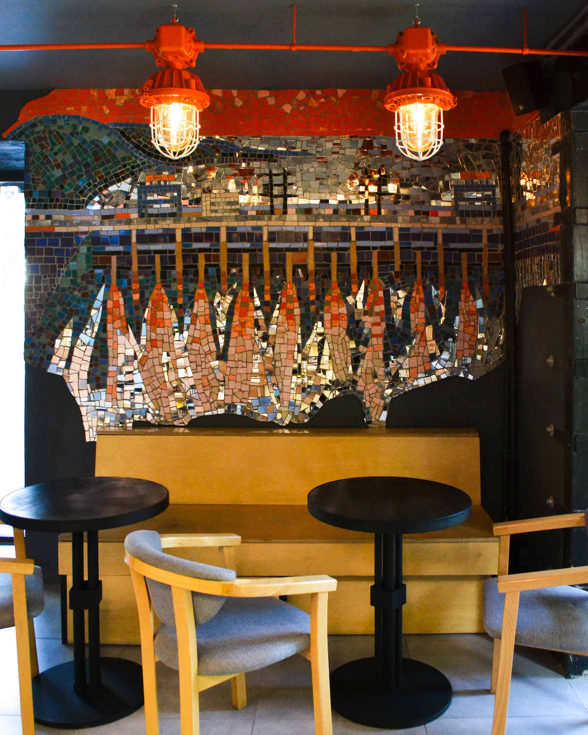 Восени 2024 року у Вишгороді під Києвом відкрилося сімейне кафе «Квартира 5», власники якого замовили для оздоблення інтер’єру мозаїку. Дослідниця монументального мистецтва Ельміра Еттінгер поділилася з «Хмарочосом» фотографіями твору.