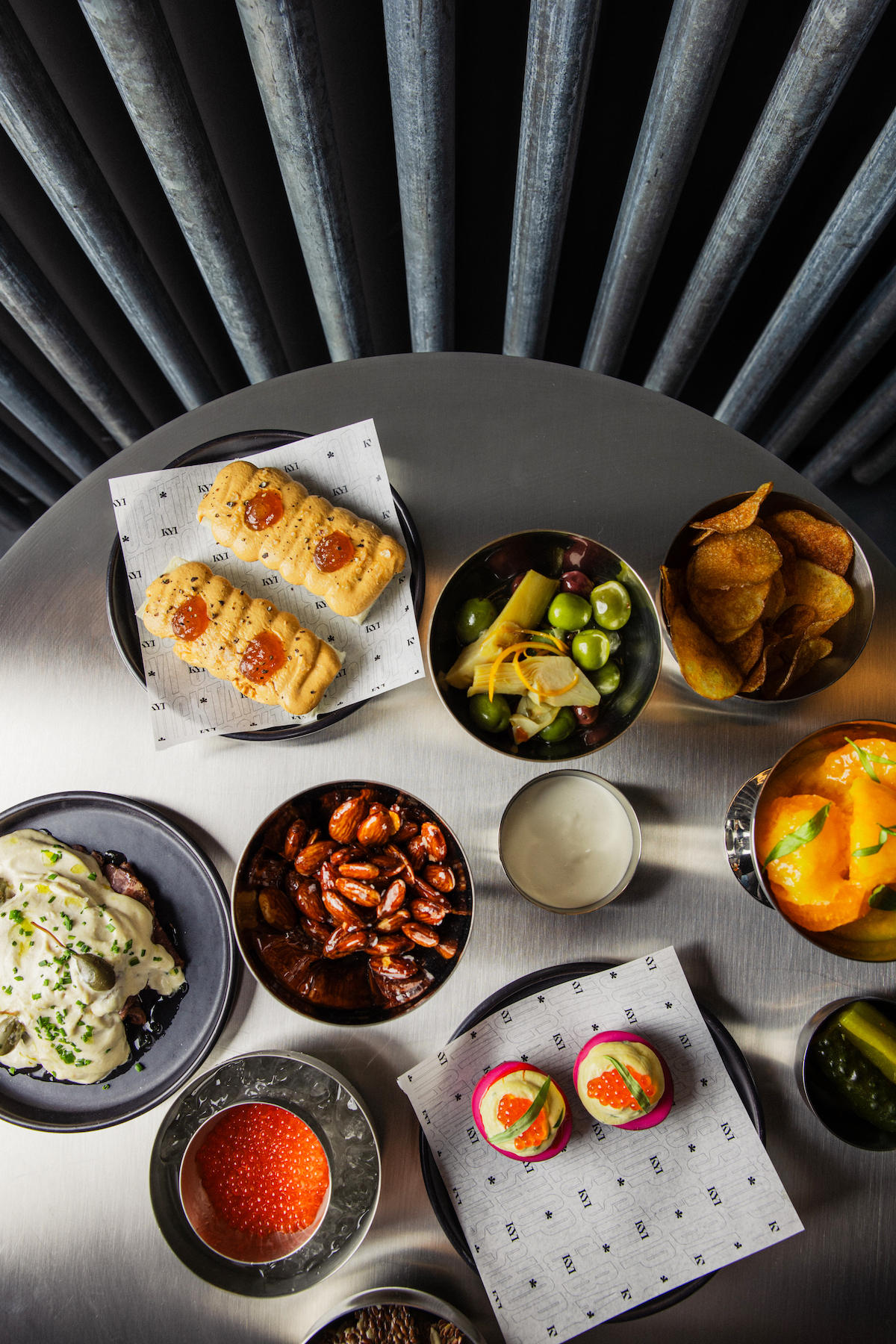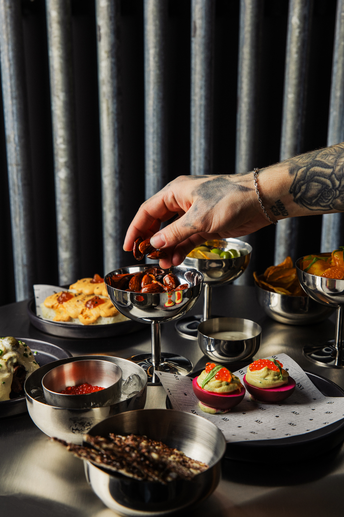 Артем Кабулахін, який відповідає за меню закусок, крім звичних для бару оливок чи маринованого артишока, залучив українські продукти: наприклад, поліський шовдар, мус із сома.