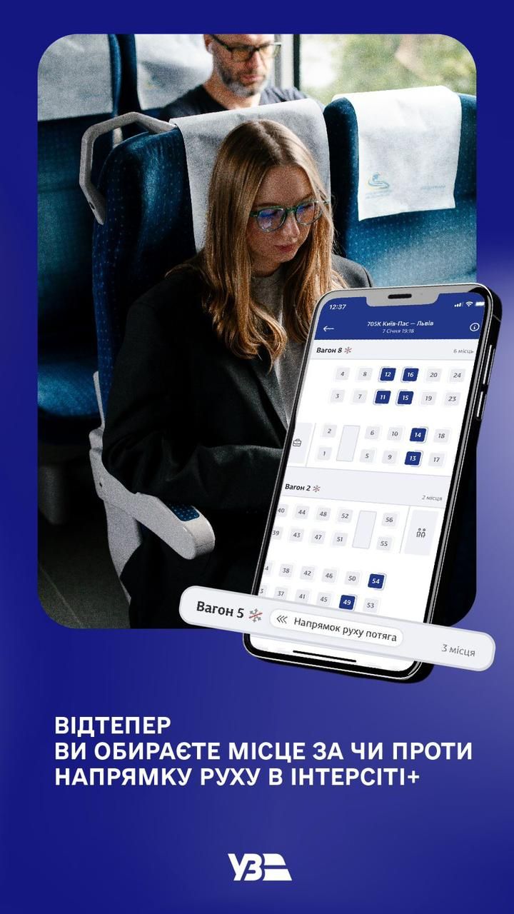 У мобільному застосунку та на сайті Укрзалізниці з’явилися позначки для місць за і проти руху поїзду, повідомив голова правління компанії Олександр Перцовський.