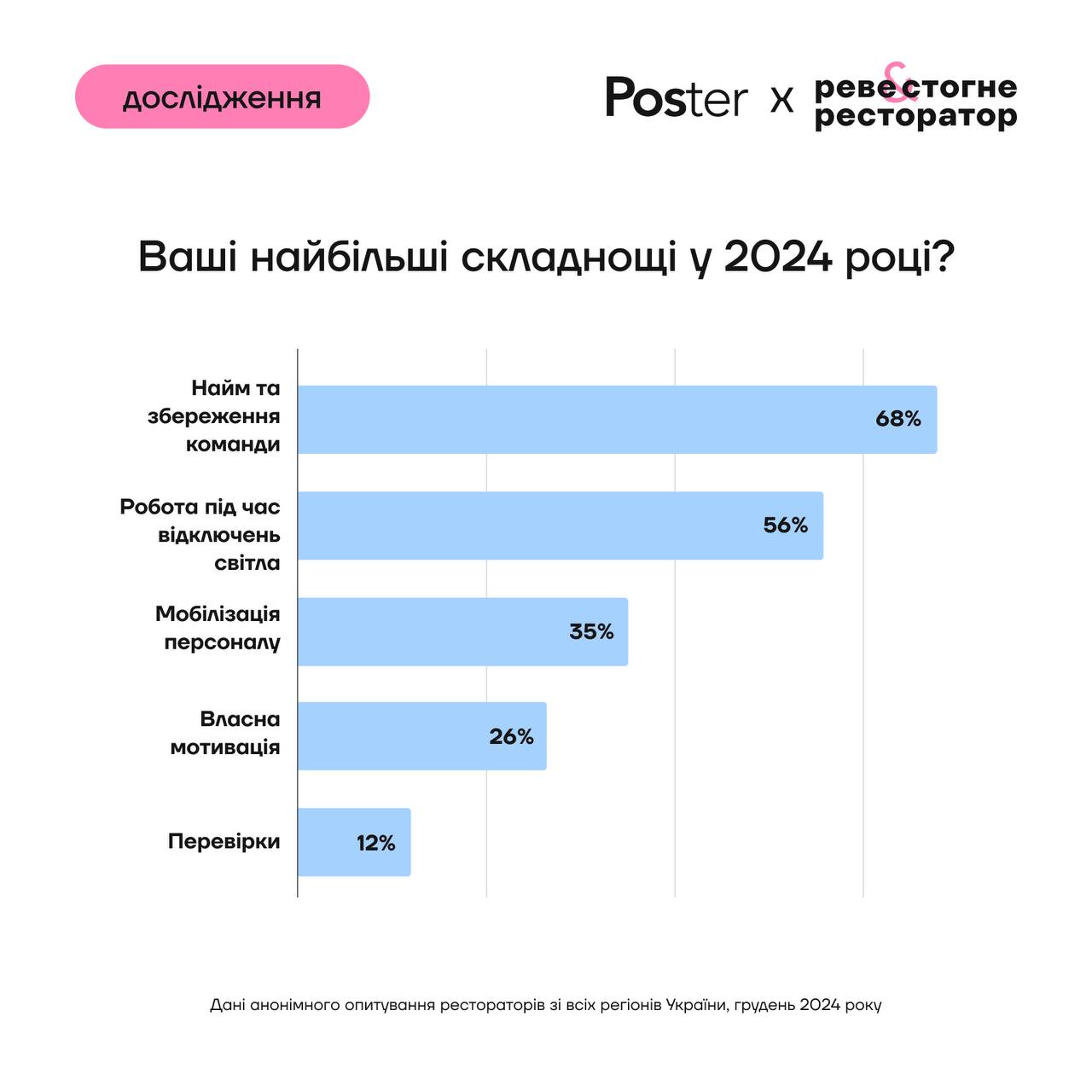 Дані ґрунтуються на анонімному анкетному опитуванні рестораторів зі всієї України. Опитування проведене в ресторанному медіа «Реве та стогне ресторатор» у грудні 2024 року. Форми заповнили близько 300 респондентів.