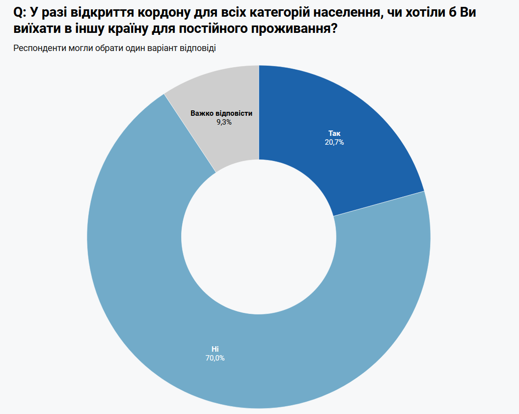 70% заявили, що не планують цього, а 21% висловили бажання переїхати. Серед тих, хто відповів ствердно 25% чоловіків і 17% жінок. Опитування проходило з 29 листопада по 14 грудня 2024 року. \