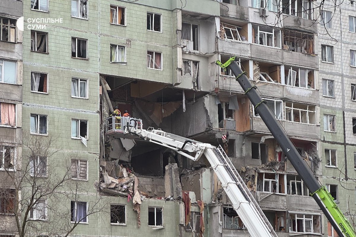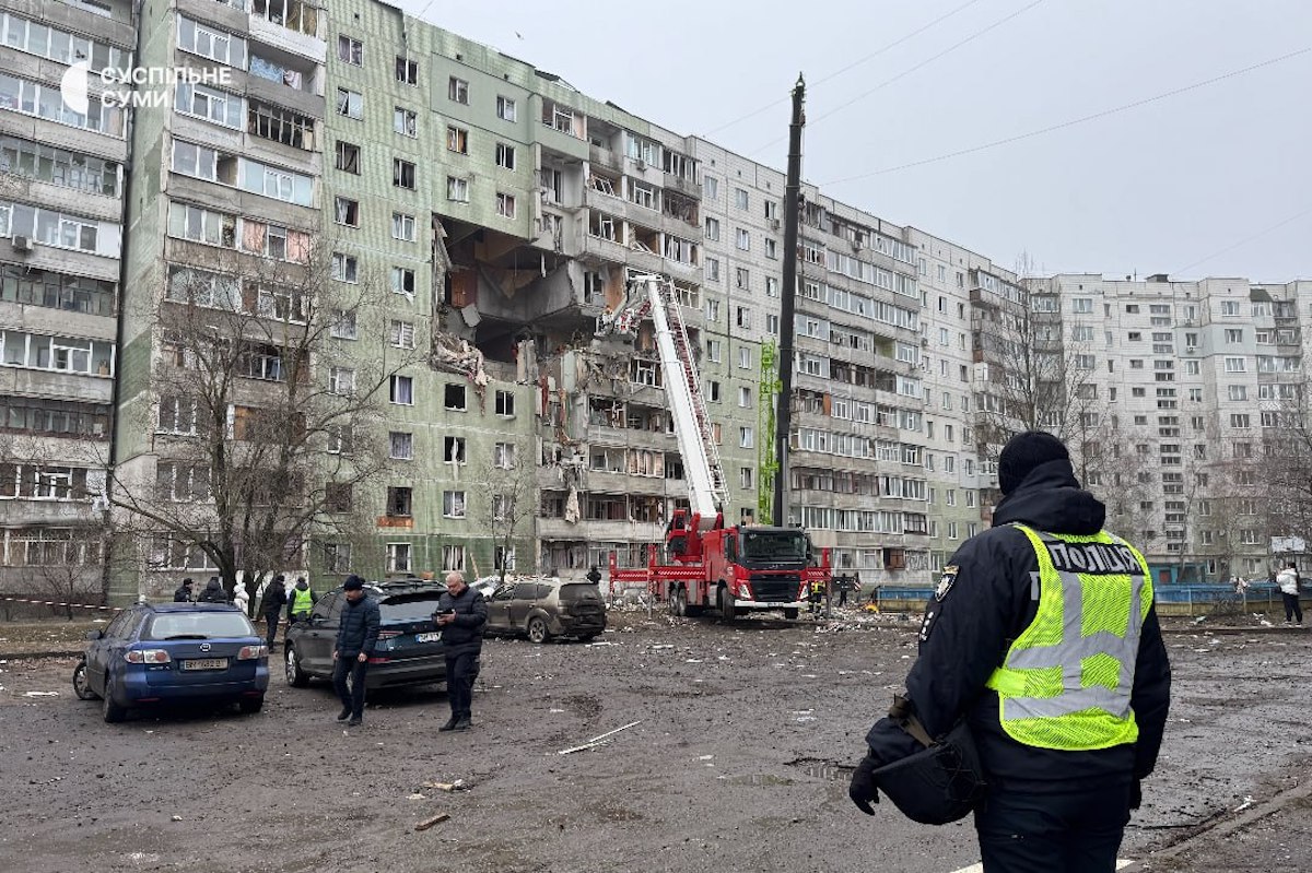 Вночі 30 січня Росія атакувала Суми дронами — удар припав на одну з житлових багатоповерхівок. У будинку зруйновано дев’ять квартир.