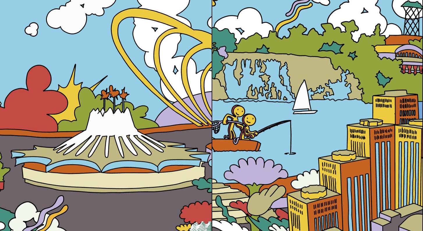 Ілюстраторки, сестри Міхаель та Ніколь Фельдман, прикрасили вікна ресторану KFC на площі Вокзальна в Дніпрі символами міста: «вежами олівцями», цирком, центром «Менора», Монастирським островом, найдовшою набережною в Європі та кулею бажань.