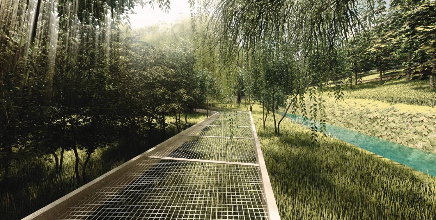 Вздовж території прокладуть дощові канали для фільтрації води, встановлять фільтри на трубах зливової каналізації. Уздовж болотистих зон облаштують дерев’яні доріжки, а біля входів та вздовж річки – гравійні. У парку з’явиться «зелений клас» із лавками та дошками для навчання, пірс, лавки, урни для сортування сміття, освітлення, живопліт і болотна зона.