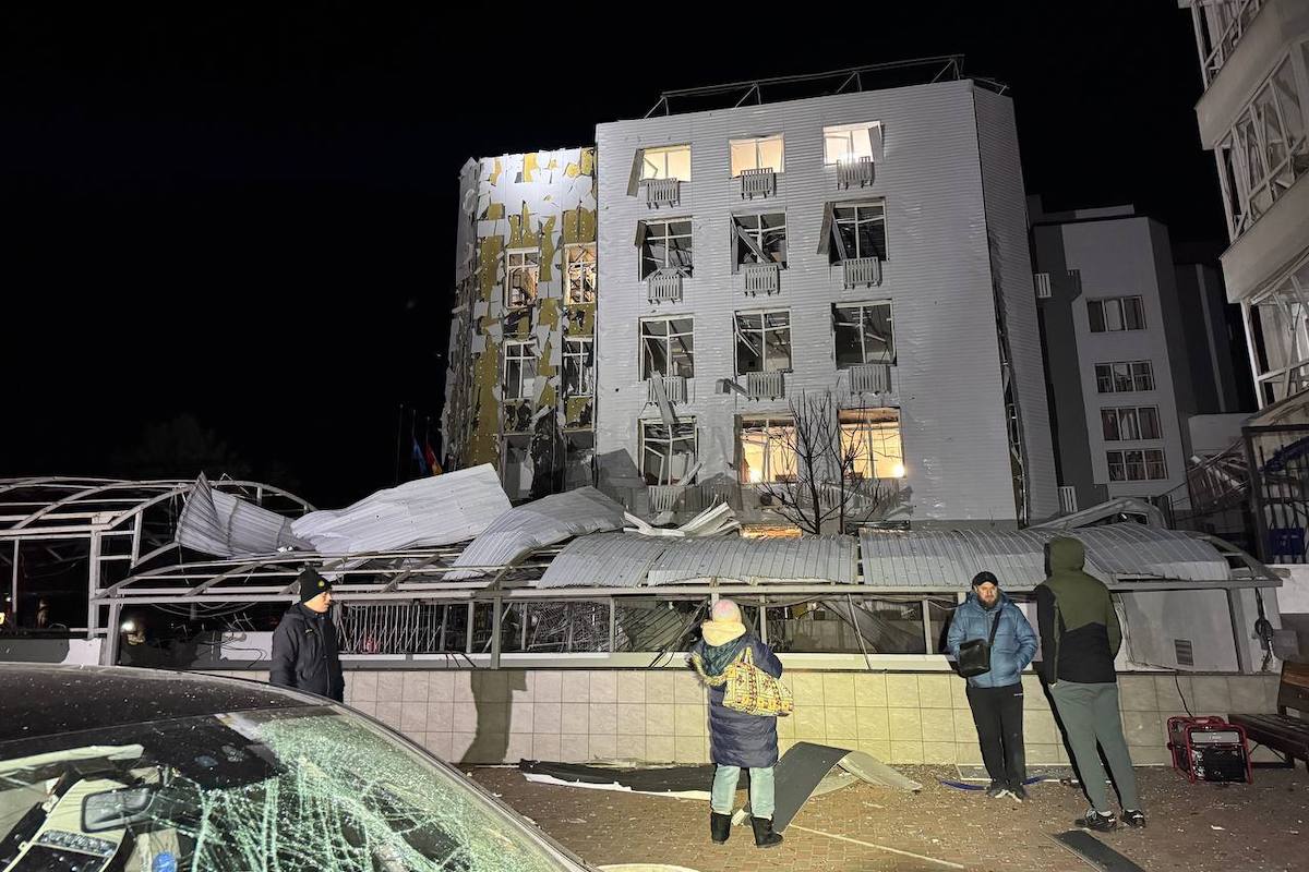 Пошкоджено будівлю поліклініки, 24-поверховий житловий будинок, дитячий садок, а також автомобілі.