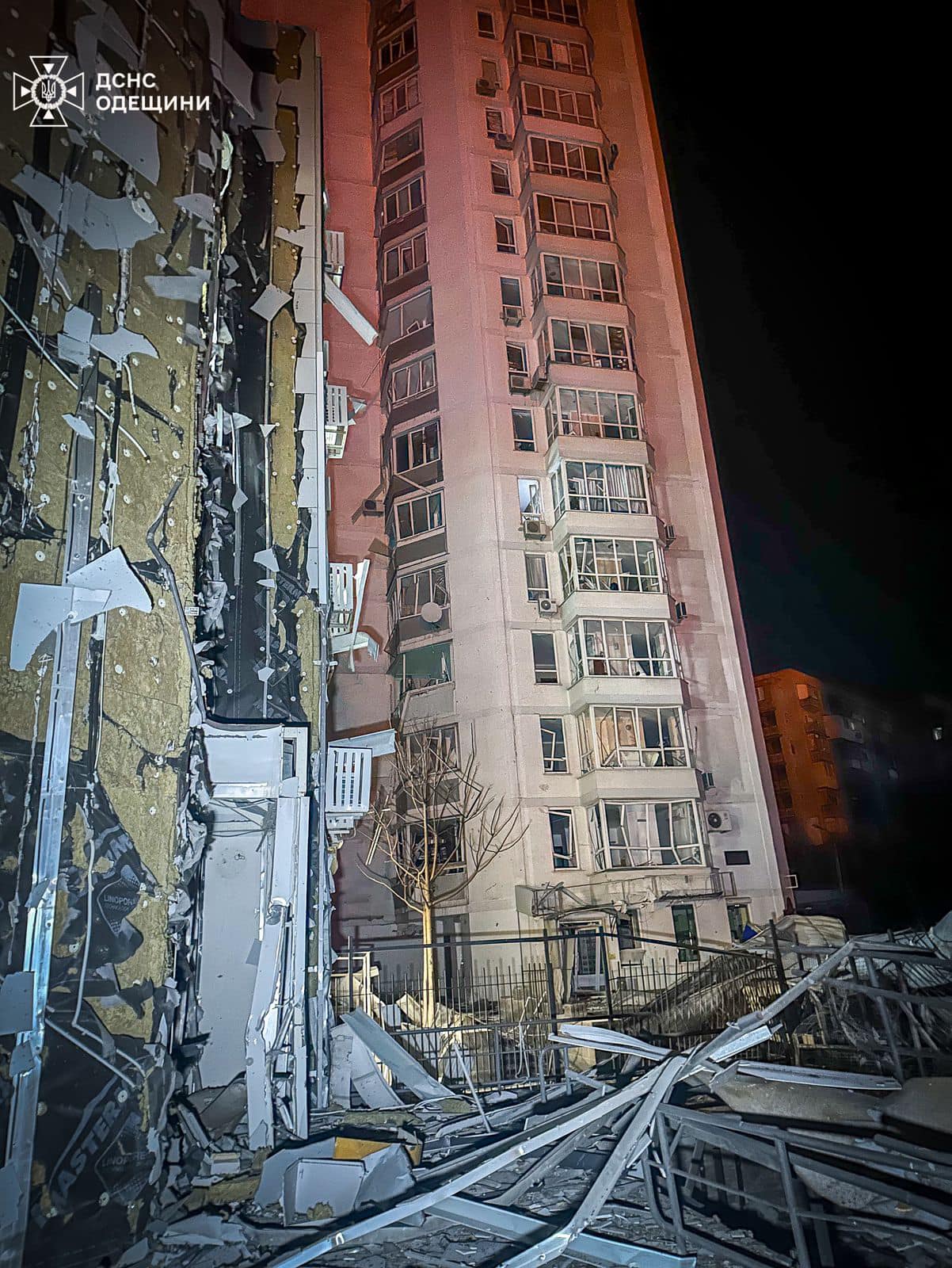 Росіяни атакували Одесу ударними безпілотниками ввечері 18 лютого, спричинивши масштабні руйнування. Виникли пожежі.