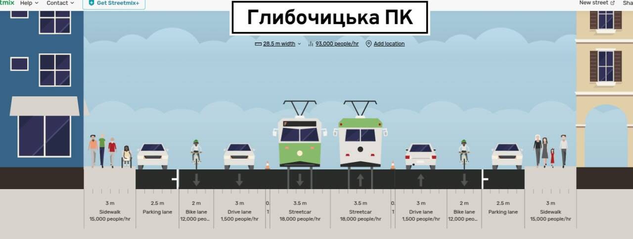 Крім того «Пасажири» пропонують зменшити ширину смуг руху, створивши нові паркомісця або односторонні велосипедні смуги шириною півтора метра з буфером пів метра. Оскільки Глибочицька є частиною магістрального веломаршруту Солом’янка – Поділ, то цю інфраструктуру також варто продумати.