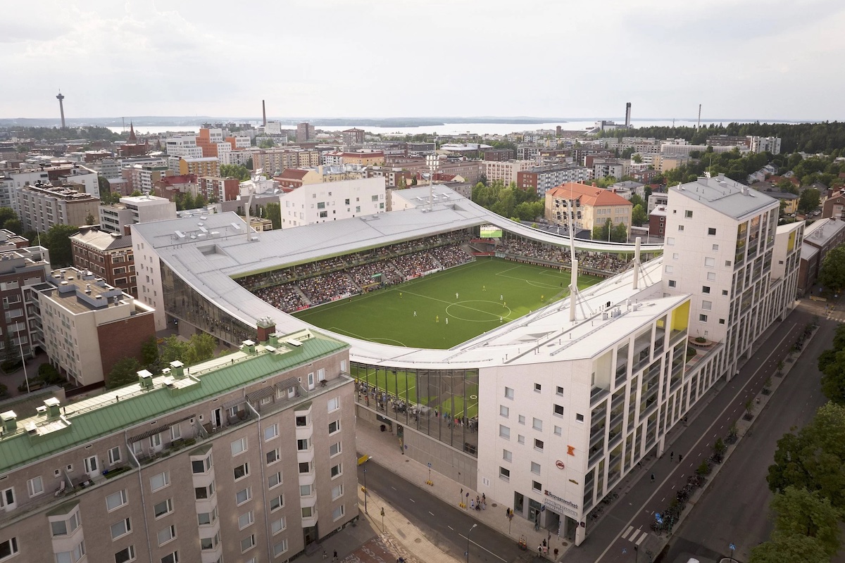 Гельсінське бюро JKMM Architects спроєктувало футбольне поле в оточенні п’яти житлових блоків із центром комерції. Архітектори описують проєкт як місто в мініатюрі, бо об’єкт поєднує декілька функцій.