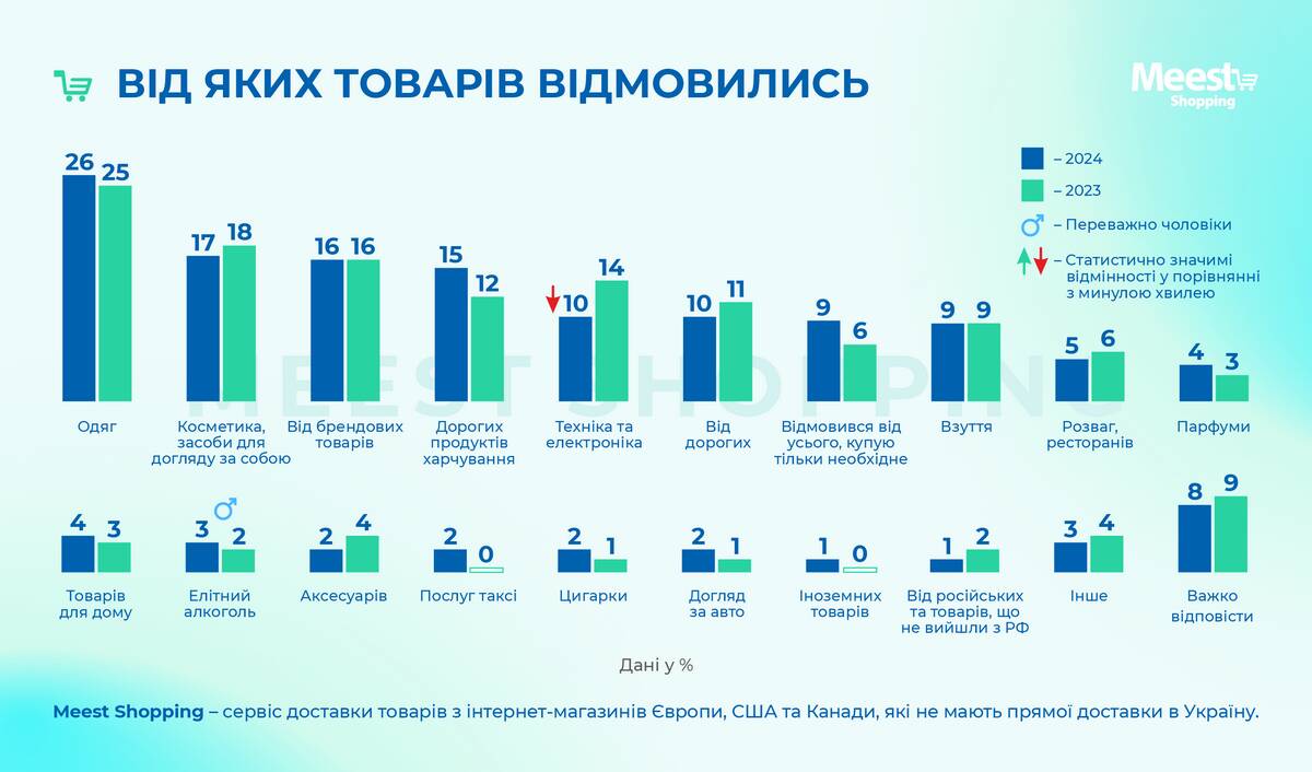 В рамках економії чверть українців відмовилась від покупок одягу, але від покупки цигарок, послуг таксі та елітного алкоголю відмовилось менше 3% опитаних.