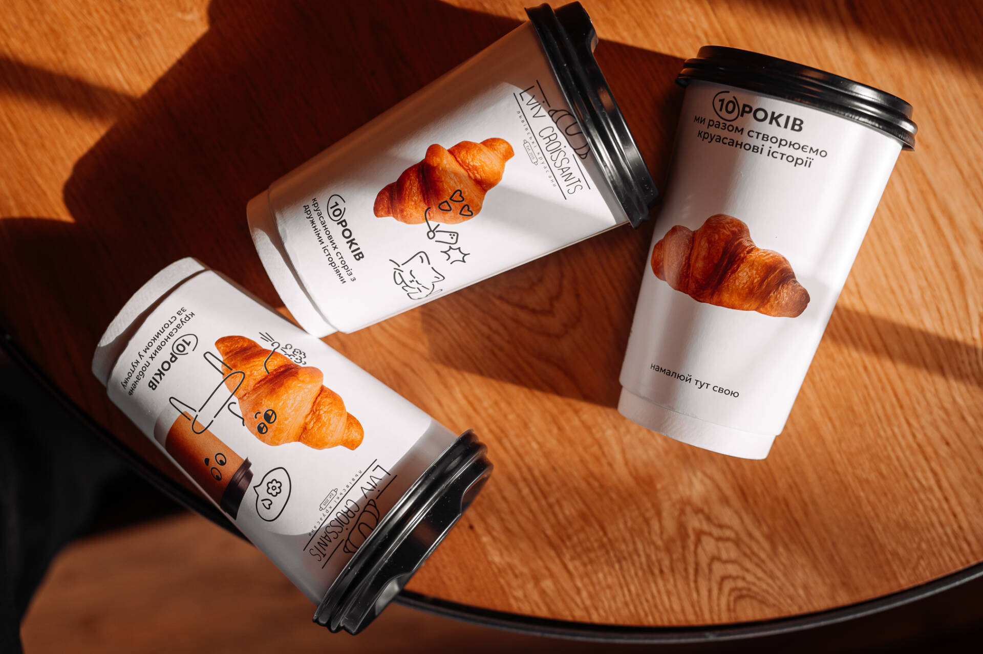 З нагоди першого ювілею бренд випустив колекцію стаканчиків «10 круасанових років разом». Їх прикрасили ілюстрації з круасаном і кавою та фрази про зворушливі моменти, пов’язані з Lviv Croissants: про зустрічі з львівськими і не тільки, круасаново-кавові розмови, побачення за столиком у куточку, сторіз з дружніми історіями та інші.
