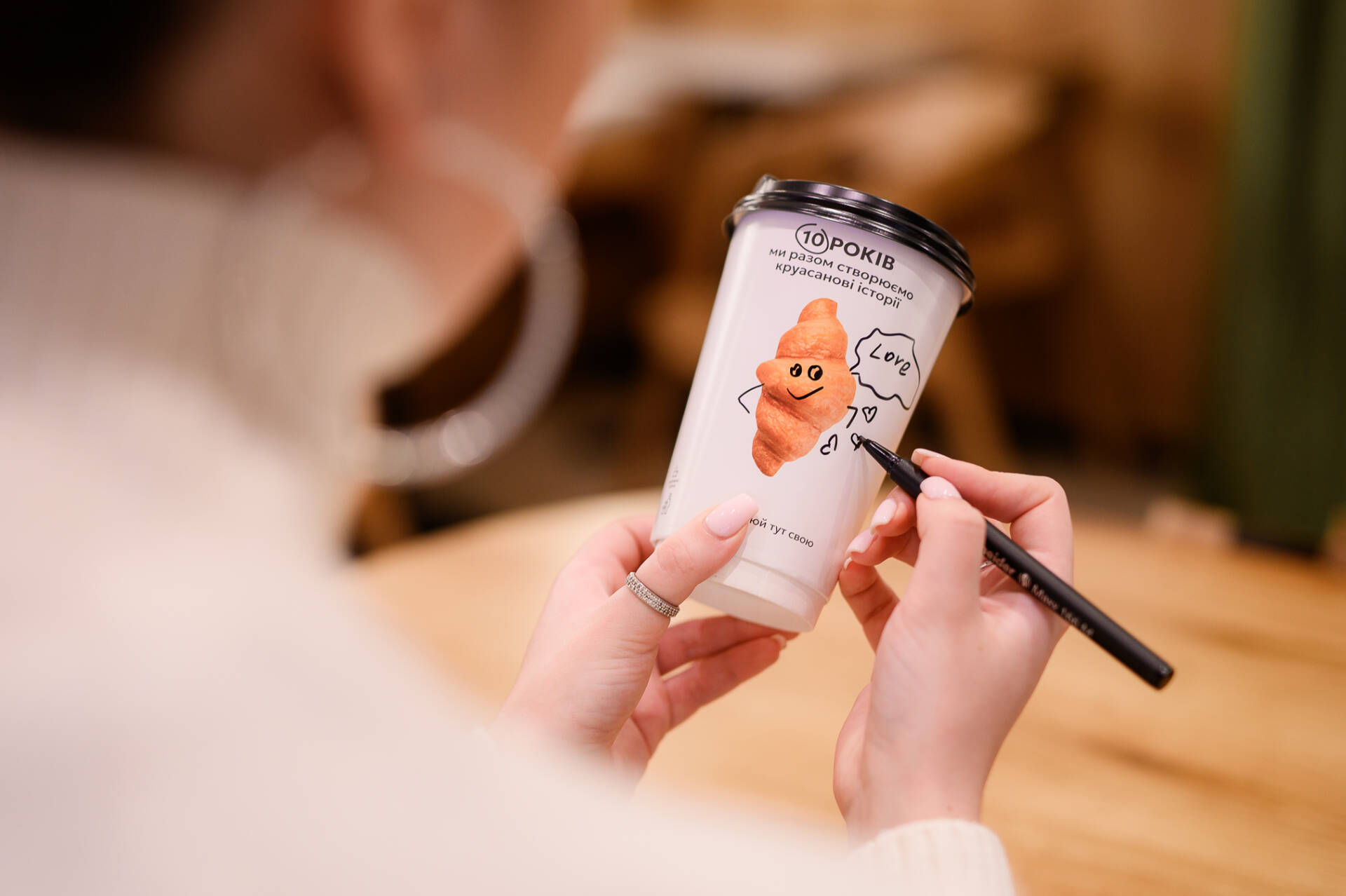 Lviv Croissants для наших Гостей – це значно більше, ніж просто заклад, так само як і стаканчики – це більше, ніж просто посуд, – ділиться співвласник компанії Юрій Загродський. – Це і нагадування про важливі сенси, і ті самі слова в потрібний момент, і перша усмішка за день. Тому з нагоди 10-річчя ми вперше вирішили запропонували нашим гостям стати співавторами наших стаканчиків і намалювати свої круасанові моменти.
