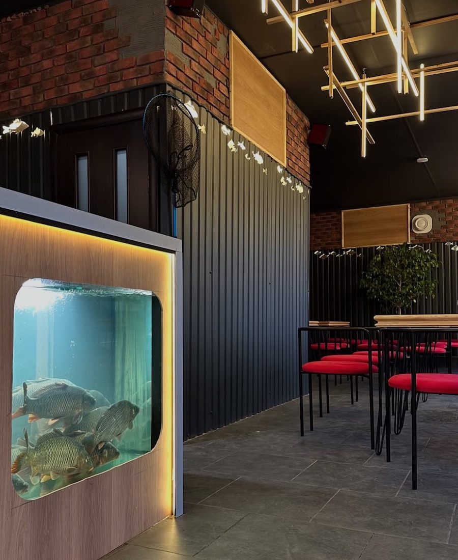 «Київські карасі» відкрили Олексій Семенко й Артем Мізь («Сіли поїли»). Інтер’єр розробив Семенко, — зокрема, самостійно створив люстру, що імітує давнє приладдя для лову риби, яким користувалися до винаходу сіток, повідомляє Віледж.