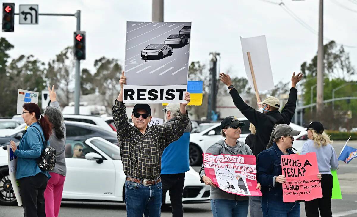У суботу, першого березня, біля магазинів та зарядних станцій Tesla пройшла хвиля протестів проти Ілона Маска, повідомляє The Washington post.