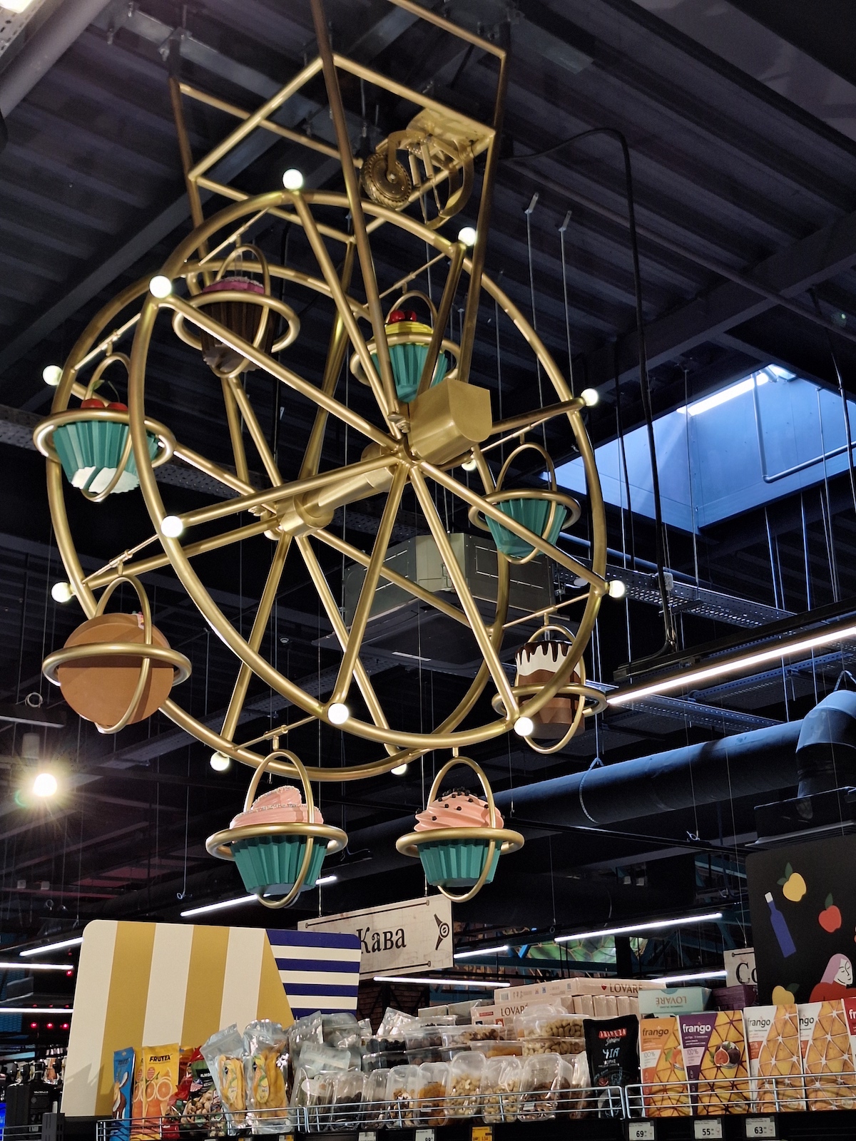 У кондитерському відділі є карусель із солодощами, у відділі алкоголю — коркотяг у вигляді літака. Також є кран, із якого крапають груші, та фотоапарат «Чиз», що видає сир.