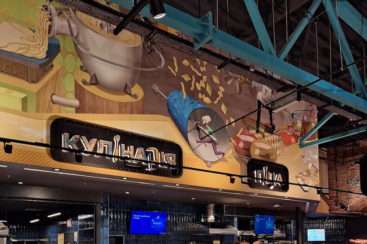 Дизайнери магазину «Сільпо» поєднали стімпанк і лофт. Із матеріалів використали цеглу, метал, зістарене дерево й бетон.