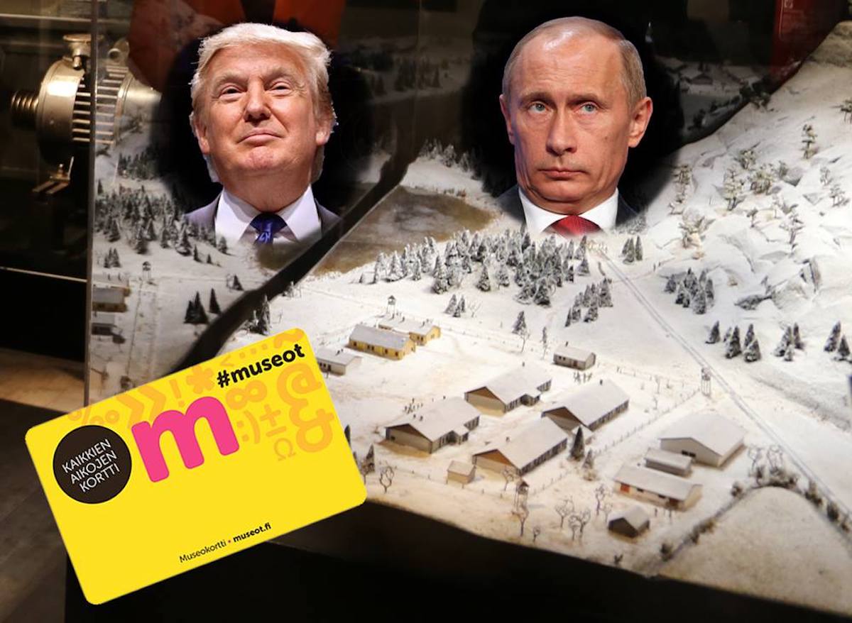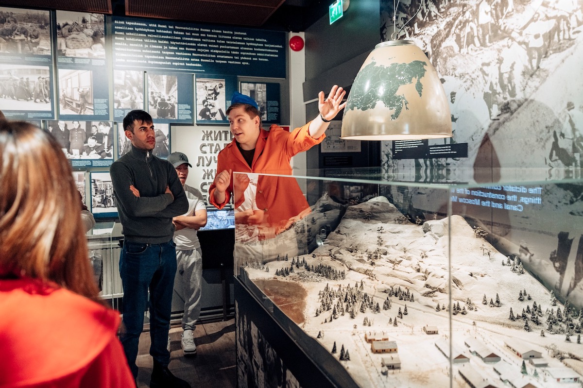 В експозиції презентовано фотографії, тексти, відео та архівні артефакти, що показують розвиток взаємин між Фінляндією та СРСР/Росією. Серед них — велосипед, на якому у 2023 році прибув один із шукачів притулку.